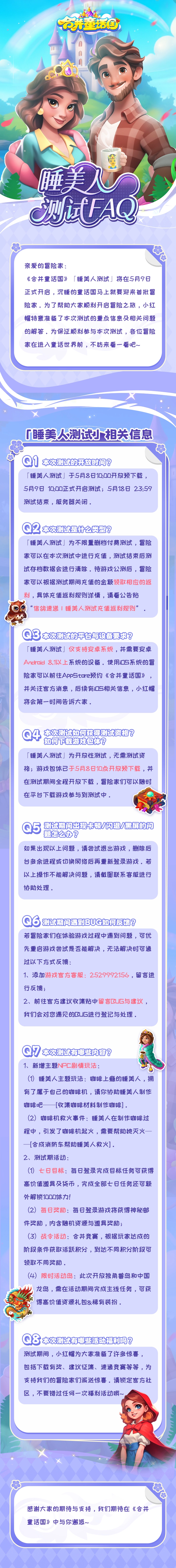 《合并童话国》的「睡美人测试」将于5月9日正式拉开帷幕,沉睡中的童话国即将迎来第一批冒险家。为助力大家顺顺利利开启这场冒险之旅,小红帽精心准备了本次测试的关键信息以及相关问题的解答。各位冒险家,为确保能顺利参与本次测试,在踏入童话世界之前,不妨来瞧一瞧哦~