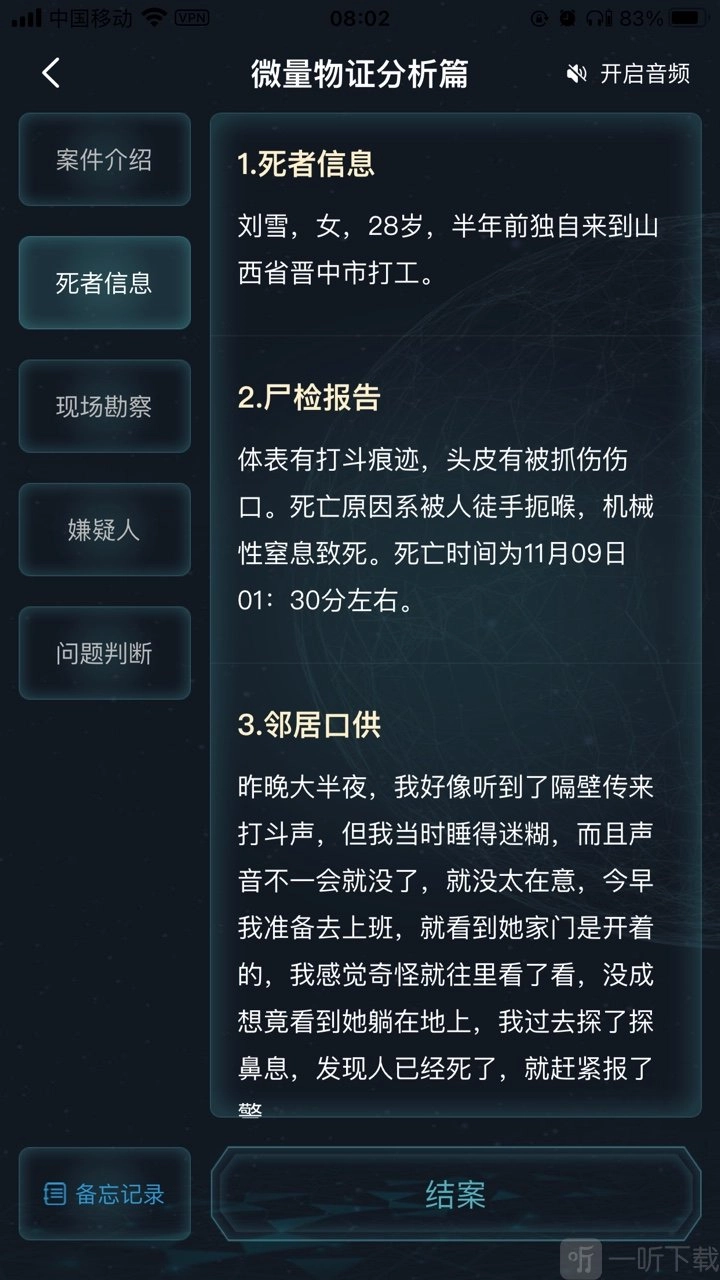 以上便是详尽的答案剖析与案件解析,相信众多小伙伴定会豁然开朗。这些内容能够助力大家轻松案件。至于更多犯罪大师相关攻略,小编会及时更新,还请大家持续留意!