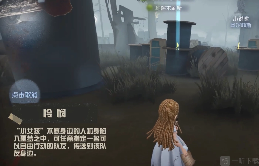 “小女孩”不愿身边的人孤身陷入噩梦之中,可任意指定一名可以自由行动的队友,传送到该队友身边。