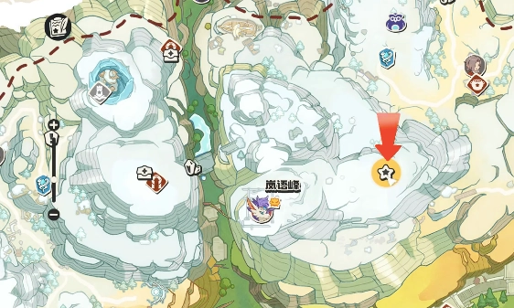 不少玩家都打趣地把它叫做一拳超人,当它提升到最高阶段时,厉害到一拳就能清空50级翼王的血条。这只堪称神宠的精灵,捕捉地点在岚语峰的左侧,小编在相关路线上用箭头做了标注。它的捕捉方法比较容易,玩家先用星星把它打晕,接着迅速派出精灵触发战斗,如此它就会眩晕两个回合。建议尽量把它打到残血再抓,能少浪费些精灵球,每天可以刷出三只。