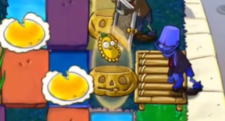 作用:可为本格内除自主扣血类植物(像绷带坚果炮、火爆双发射手)之外的所有其他植物承受外部伤害,本格内其他植物所受伤害均算在坚果南瓜头身上。在坚果南瓜头死亡前,本格内其他植物对锤击和碾压伤害免疫。