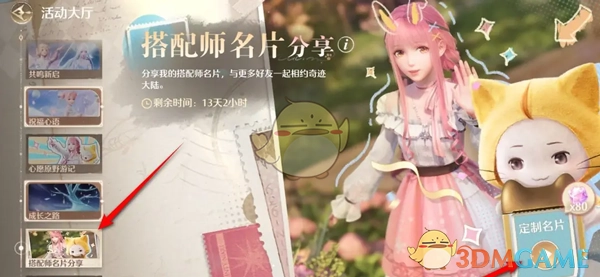 1. 第一步,我们来到游戏活动大厅,找到搭配师名片并点击,接着点击其右侧的定制名片。