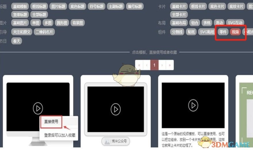 3、挑选一个视频样式,点击“直接使用”。