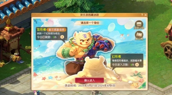 1、在长安城坐标(221,123)处找到【小小粽仙】,即可参与玩法。玩法中有两种身份可供选择,分别为幻形者和显形者。