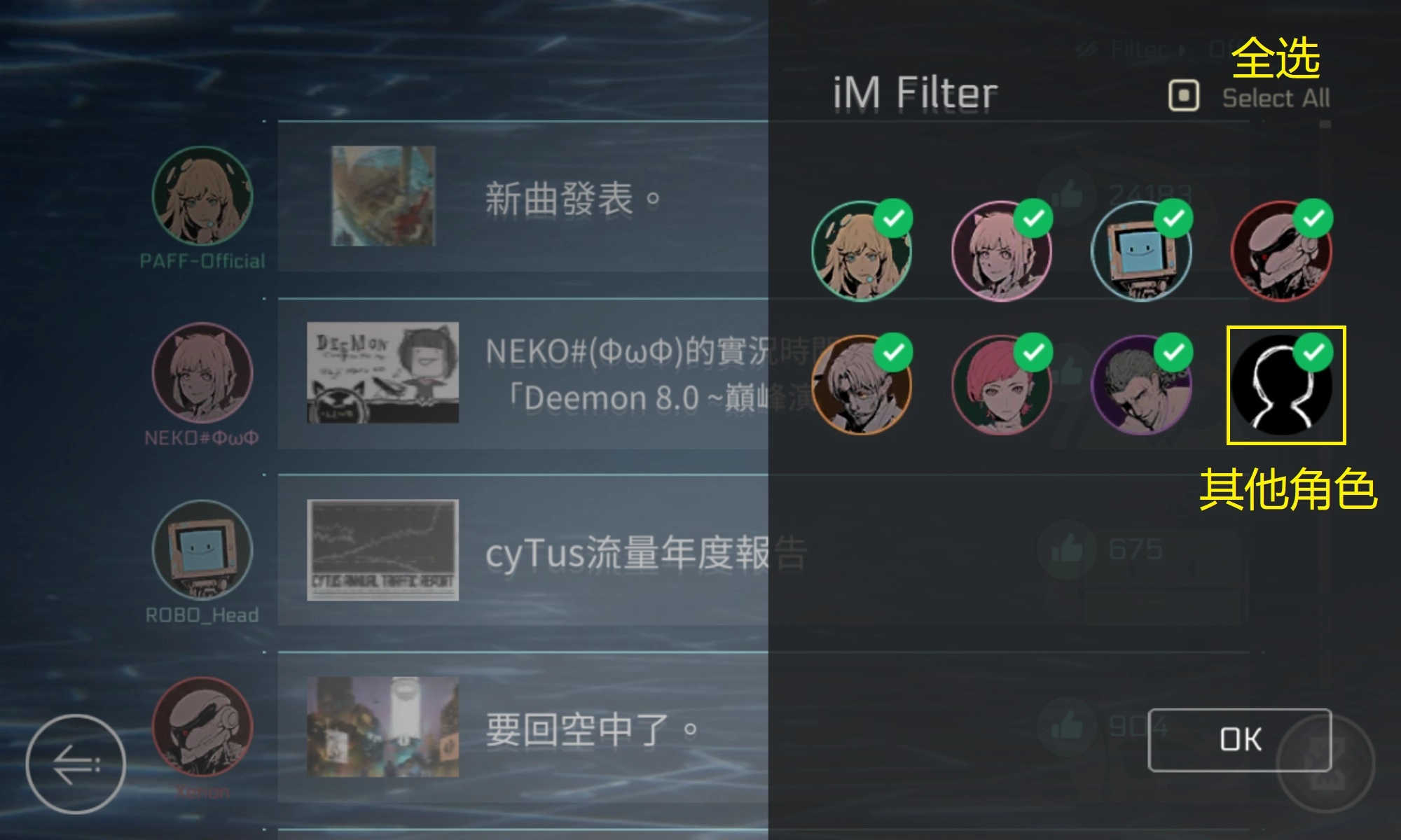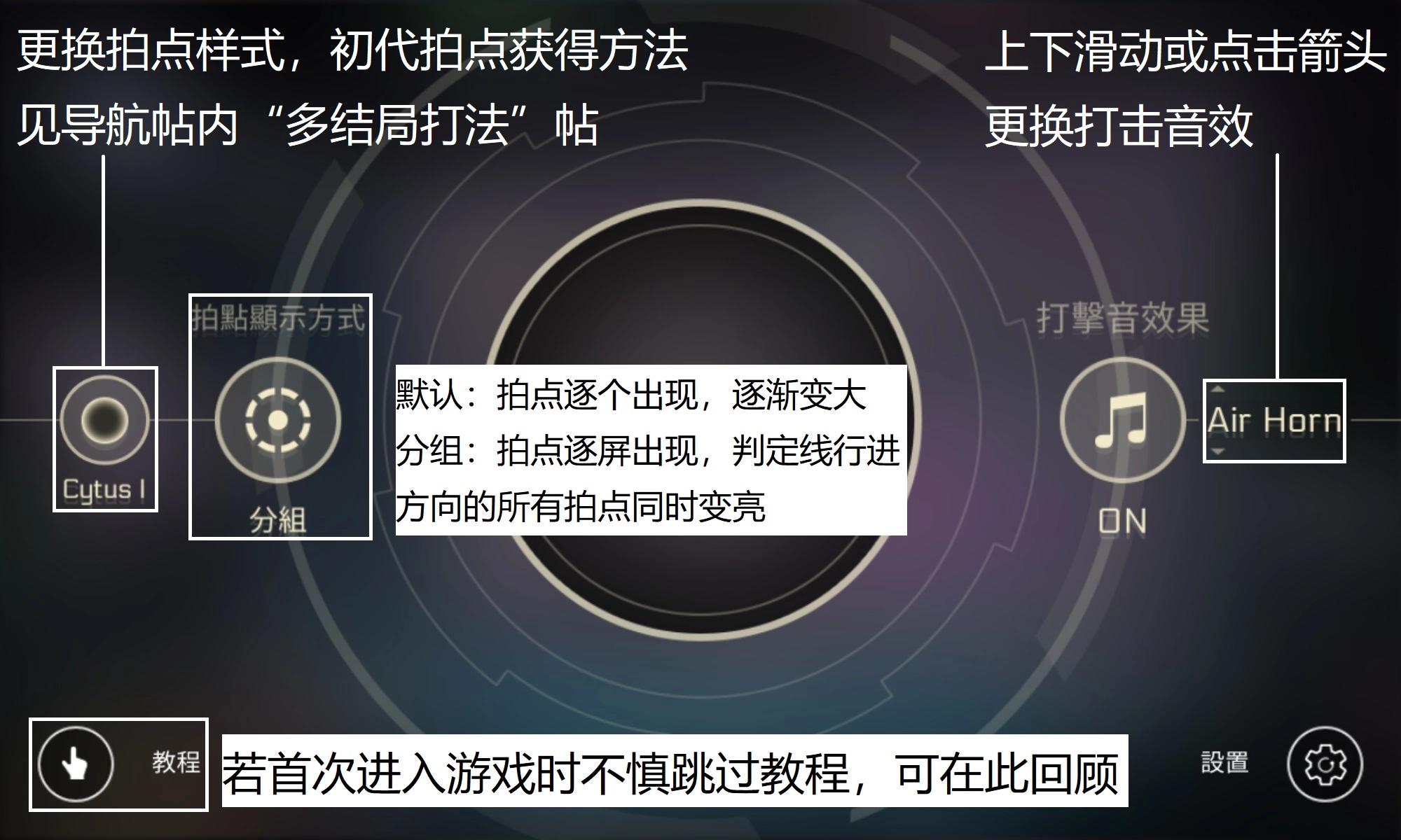 补充说明:Cytusα(即Cytus初代在NS游戏机上的重置版本)的拍点样式获取方式为:完成Ivy90级的iM剧情。