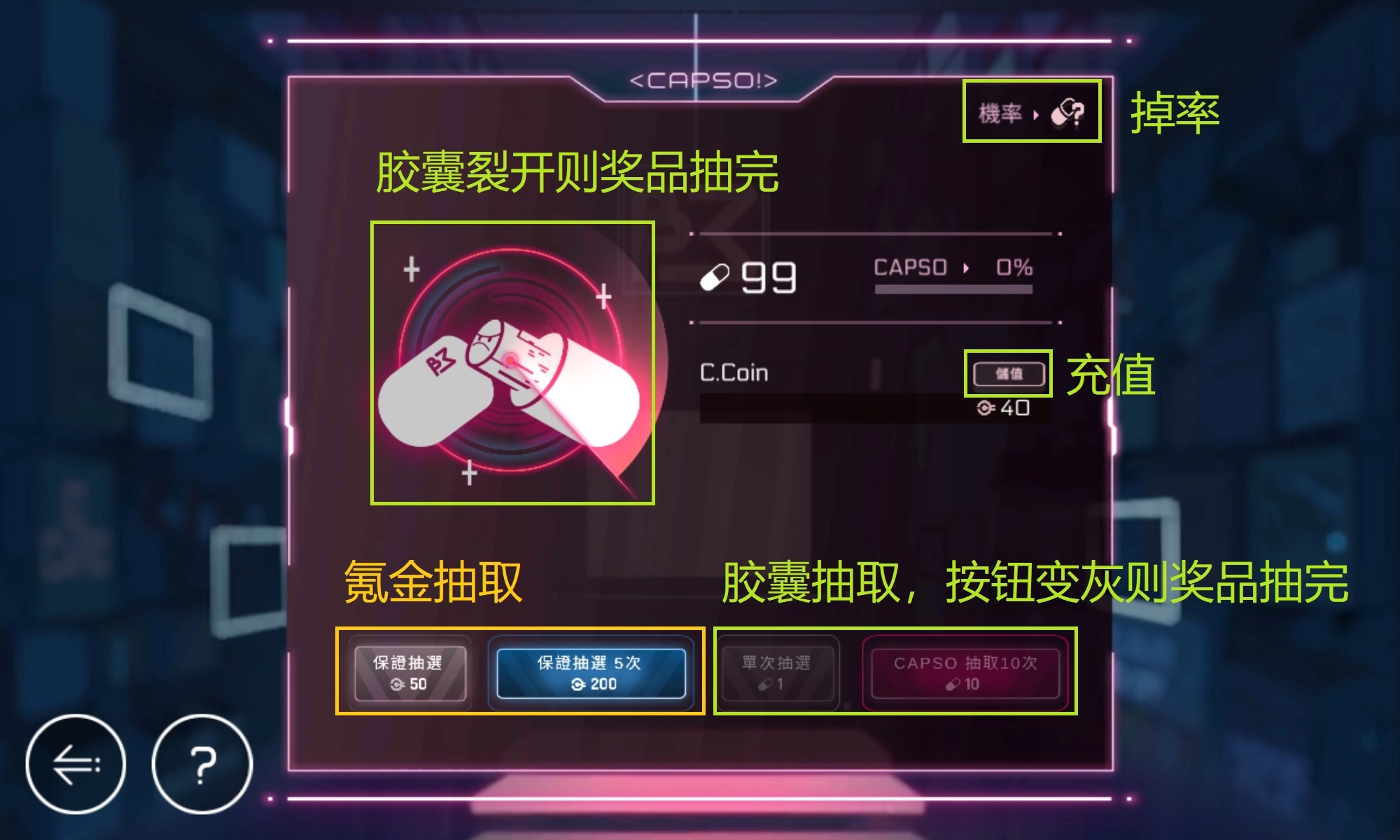 2. CAPSO胶囊抽奖,奖池只需一次氪金买断,后续胶囊免费抽取。