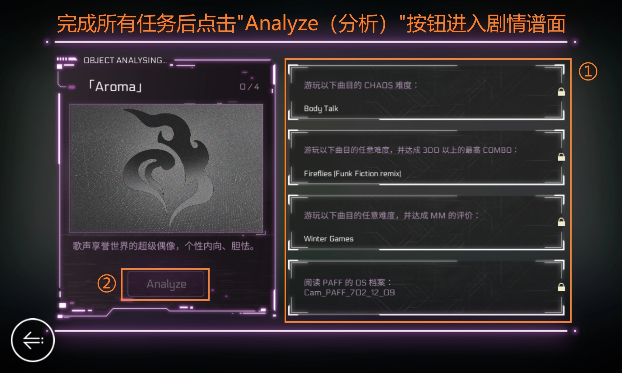1. Vanessa在25级剧情时存在三种结局,当中有两种结局能够解锁新的曲目;而Vanessa达到50级剧情时,则会解锁Crash难度的谱面。