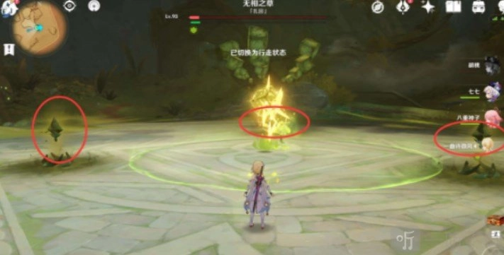 1、正常进行战斗即可,在战斗过程中,当无相之草变成【球】状下落时,可使用【火元素角色】将其外壳烧掉,从而让核心暴露出来。