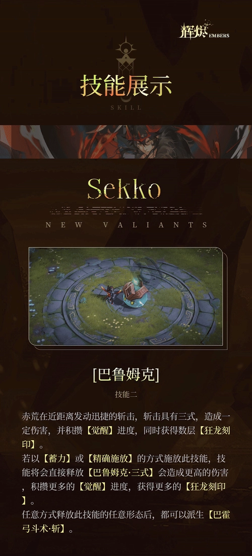 邪龙的鲜血自那破碎不堪的躯体之中汩汩流出,仿若倾盆而下的暴雨,淋透了赤荒的每一寸肌肤。随着血脉相互接驳,灵魂彼此相融,这位勇敢的少年获得了应得的嘉奖——他与苟萨斯合二为一,拥有了超脱凡人的强大力量。接下来,就由小编为大家带来详细的《辉烬》赤荒技能介绍!