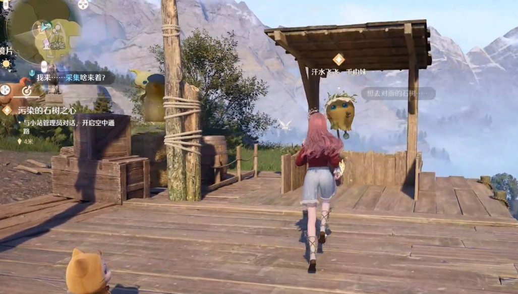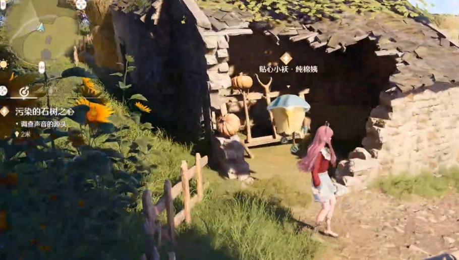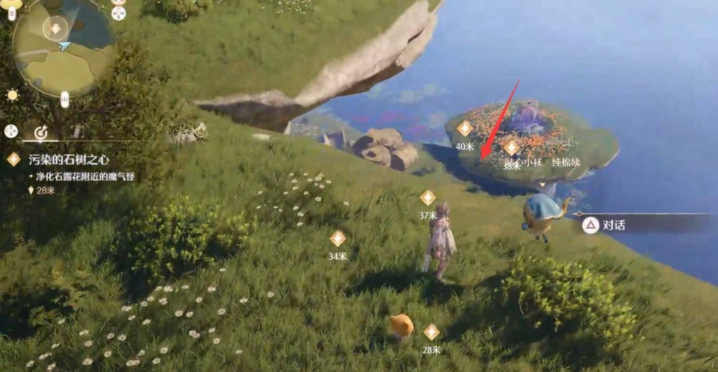 3、跟着纯棉姨,前往悬崖下方消灭怪物,净化石露花。