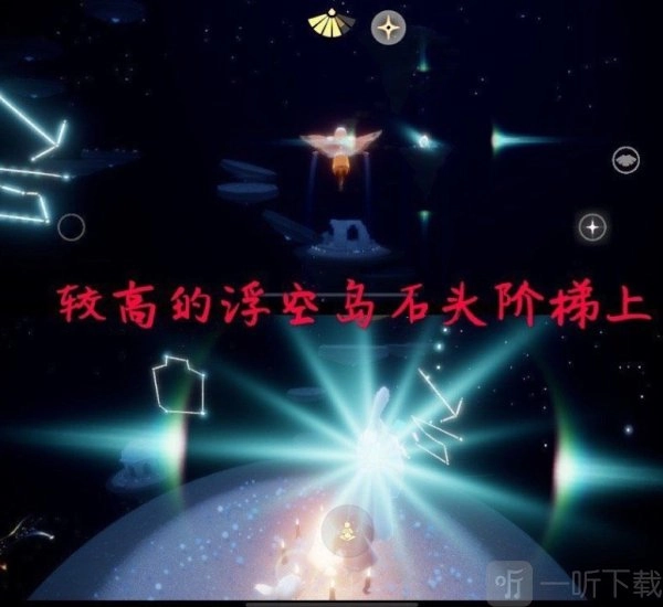 4、第四处的打坐先祖位于浮空岛的石头台阶之上。
