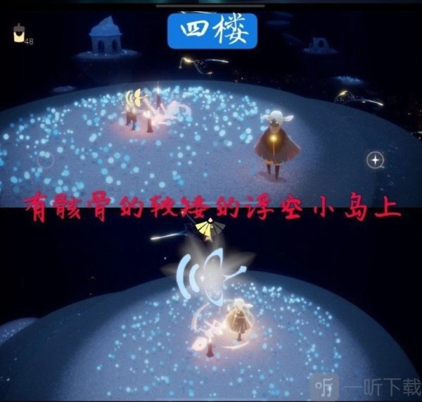 5、声音与动作出现在那座带有骸骨且相对低矮的浮空小岛上。