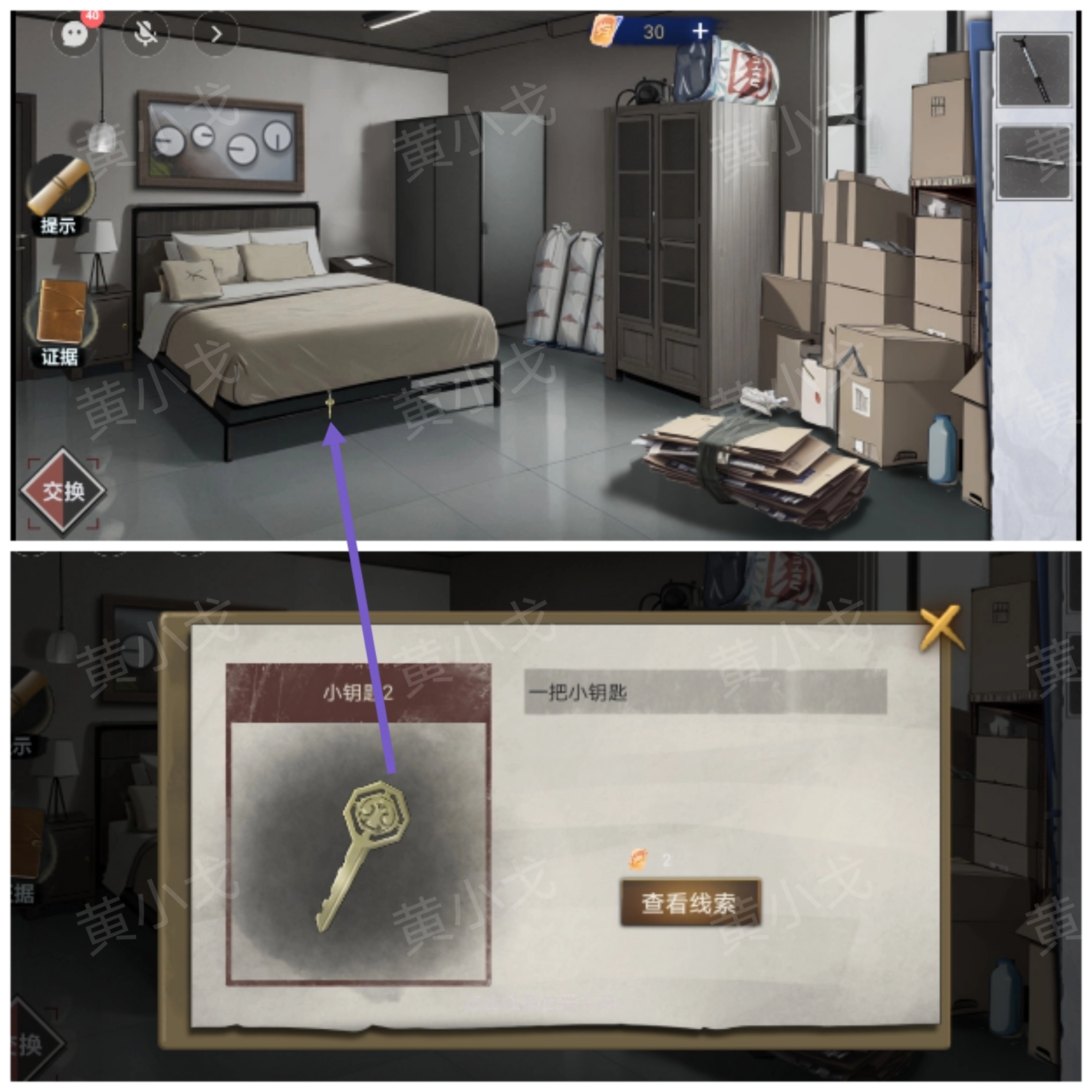 2.拾取床尾的【小钥匙2】