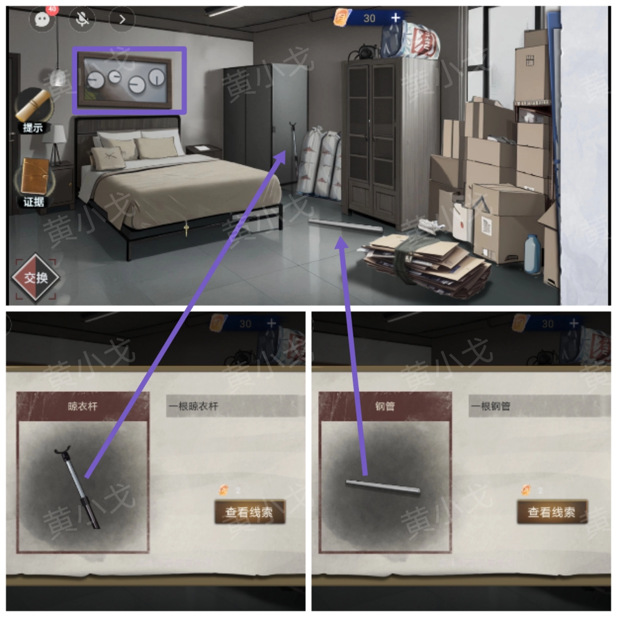1. 捡起地上的【钢管】以及柜子旁边的【晾衣杆】