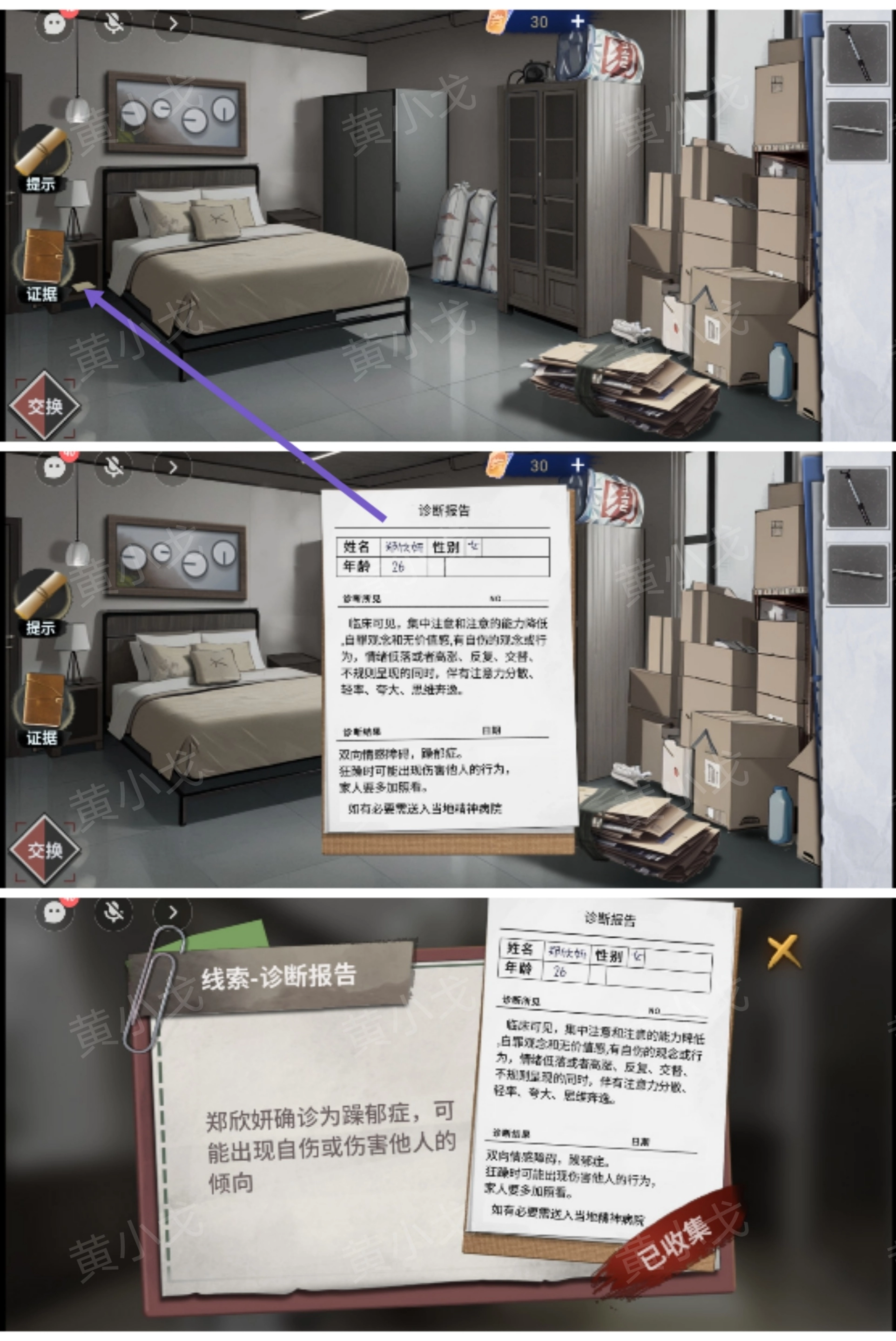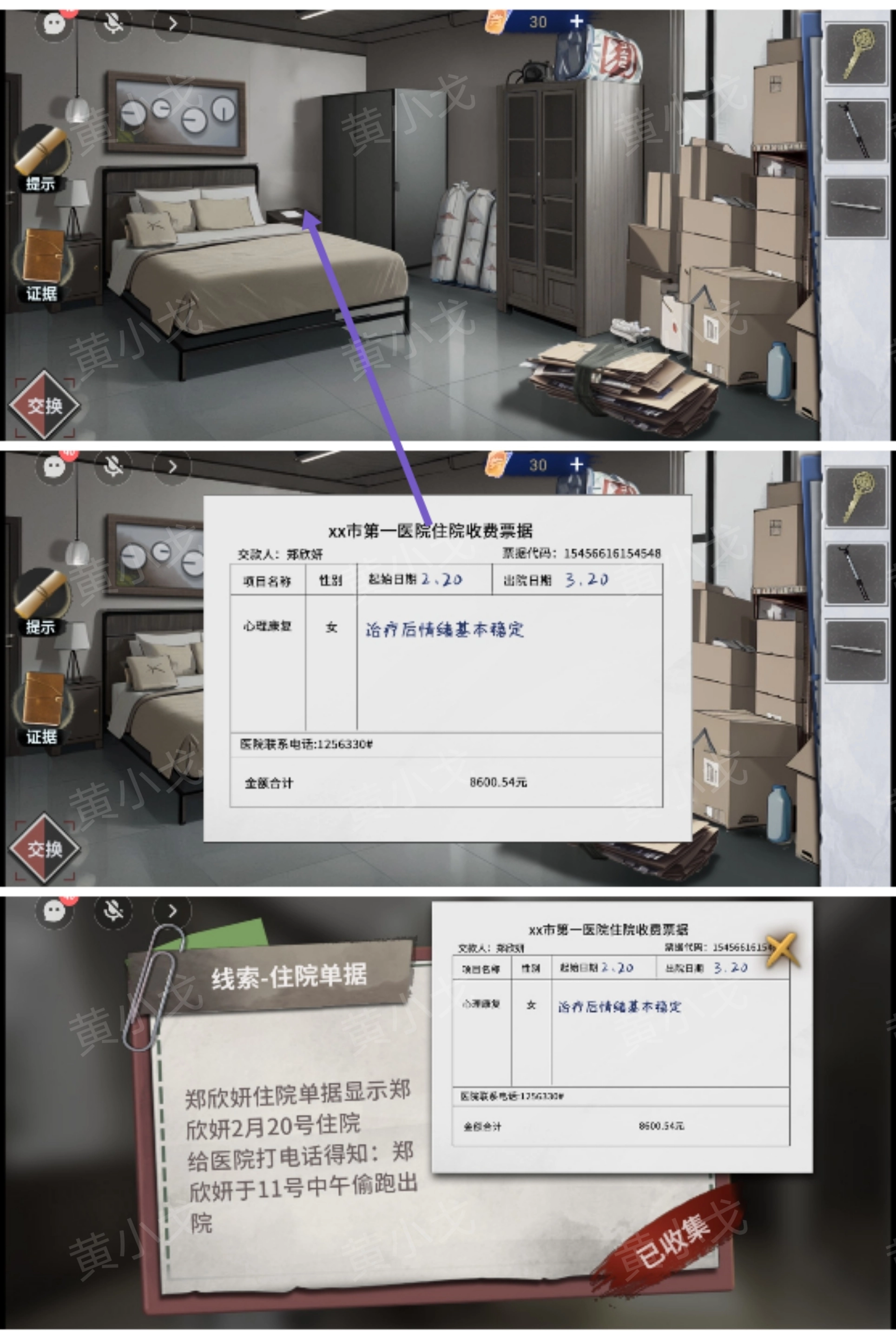 3. 把右侧床头柜上的【住院单据】收集起来