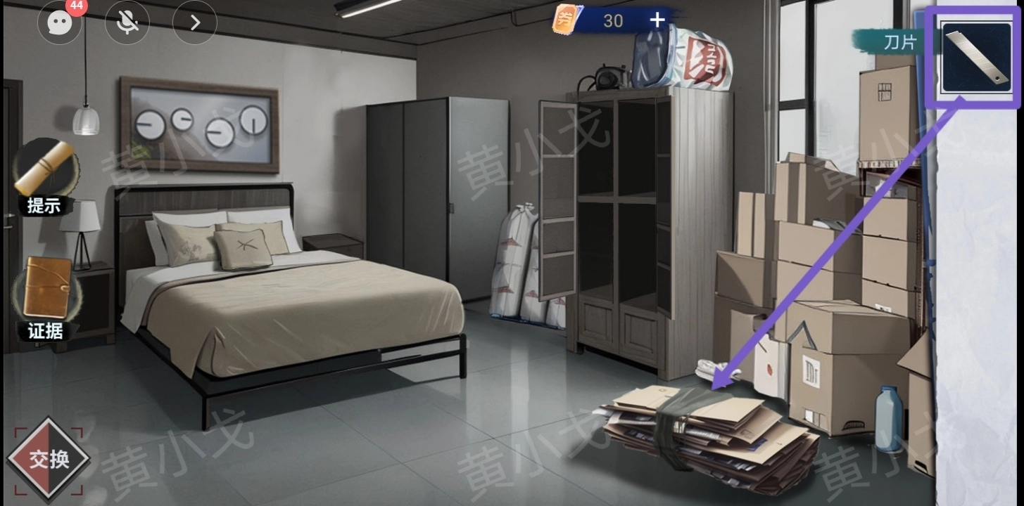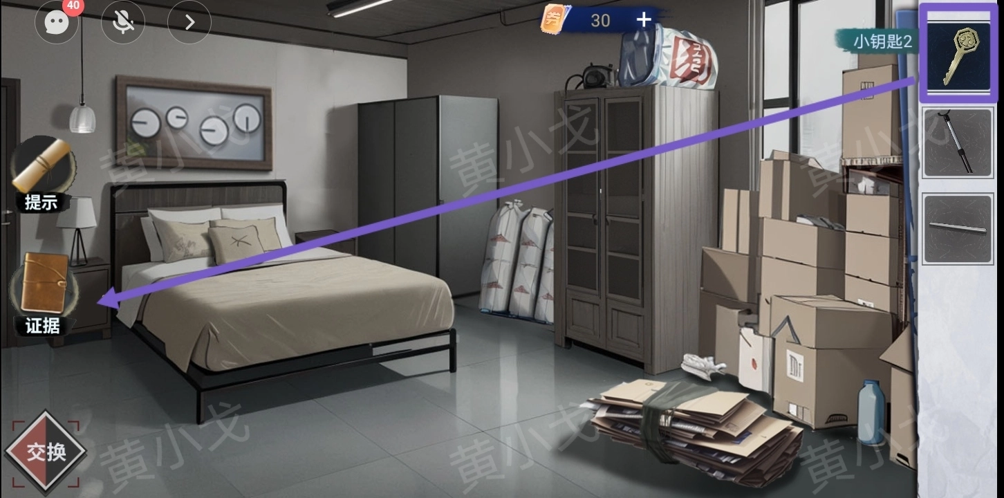 5.用【小钥匙2】打开左侧床头柜