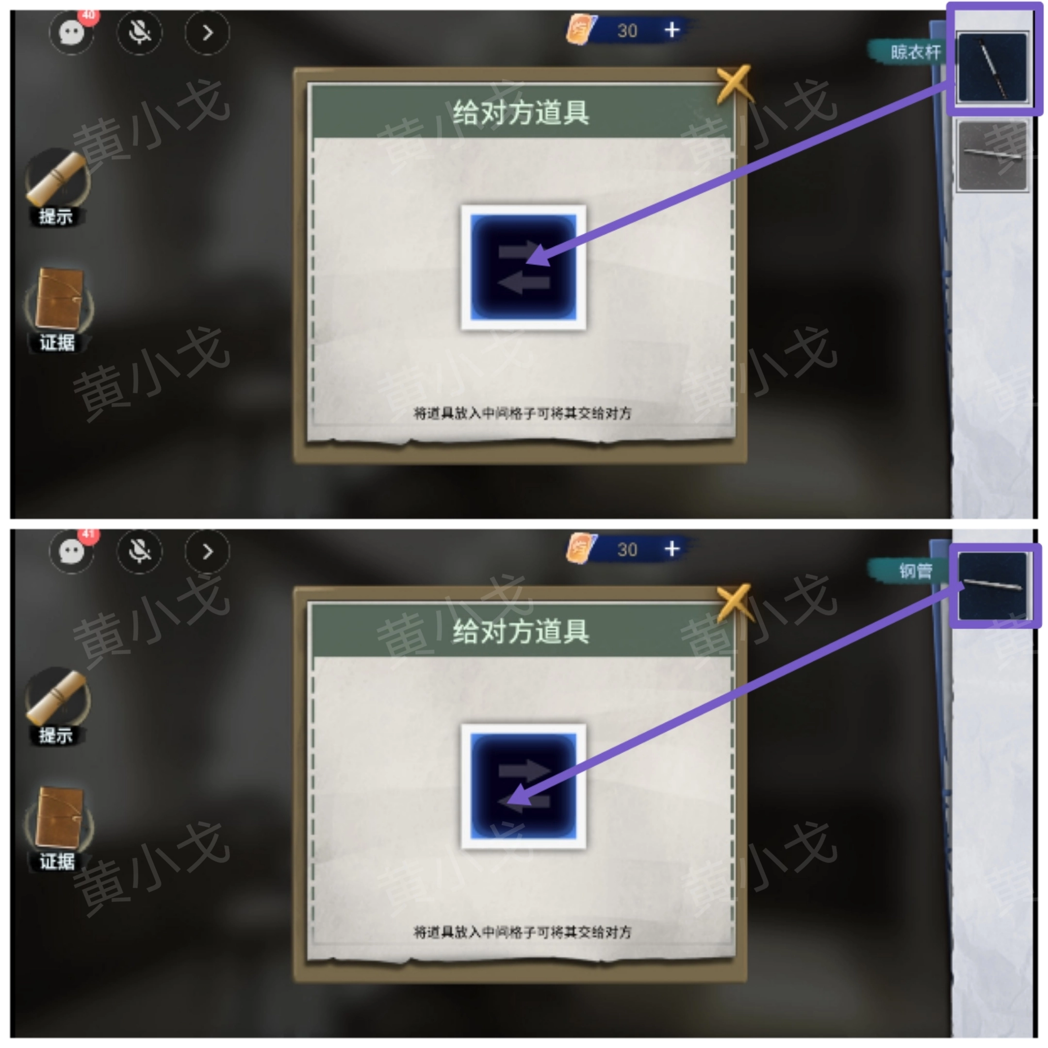 7. 将【晾衣杆】与【钢管】传递给队友
