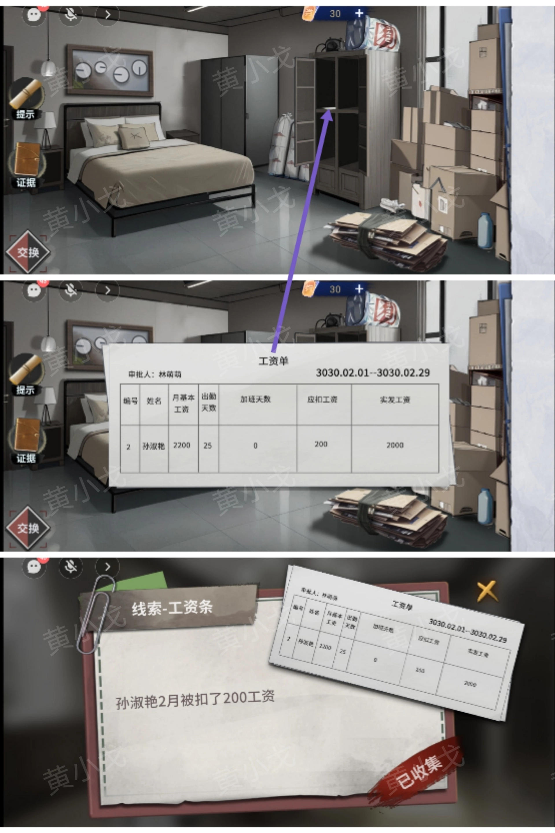 9.打开柜子,收集【工资条】