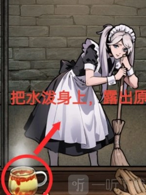 3、针对第三个女仆,我们忽略选项,直接把桌子上的水泼到她身上,这样就能让她现出原型,之后选择不可放行。
