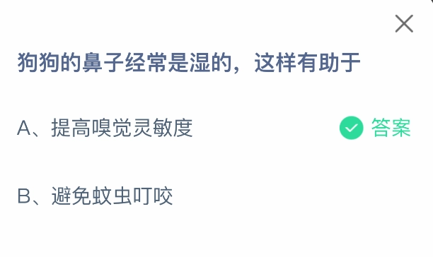 狗狗的鼻子常常是湿的,这有什么作用呢?这是支付宝蚂蚁庄园6月27日的小鸡答题题目。支付宝的小鸡答题活动深受大家喜爱,大家通过参与活动获取饲料,就能喂养小鸡,进而领取更多鸡蛋去帮助更多人。今日这道题的正确答案是【提高嗅觉灵敏度】。狗狗的嗅觉极其灵敏,湿润的鼻子能使气味分子更易附着其上,进而提升嗅觉的敏锐程度。