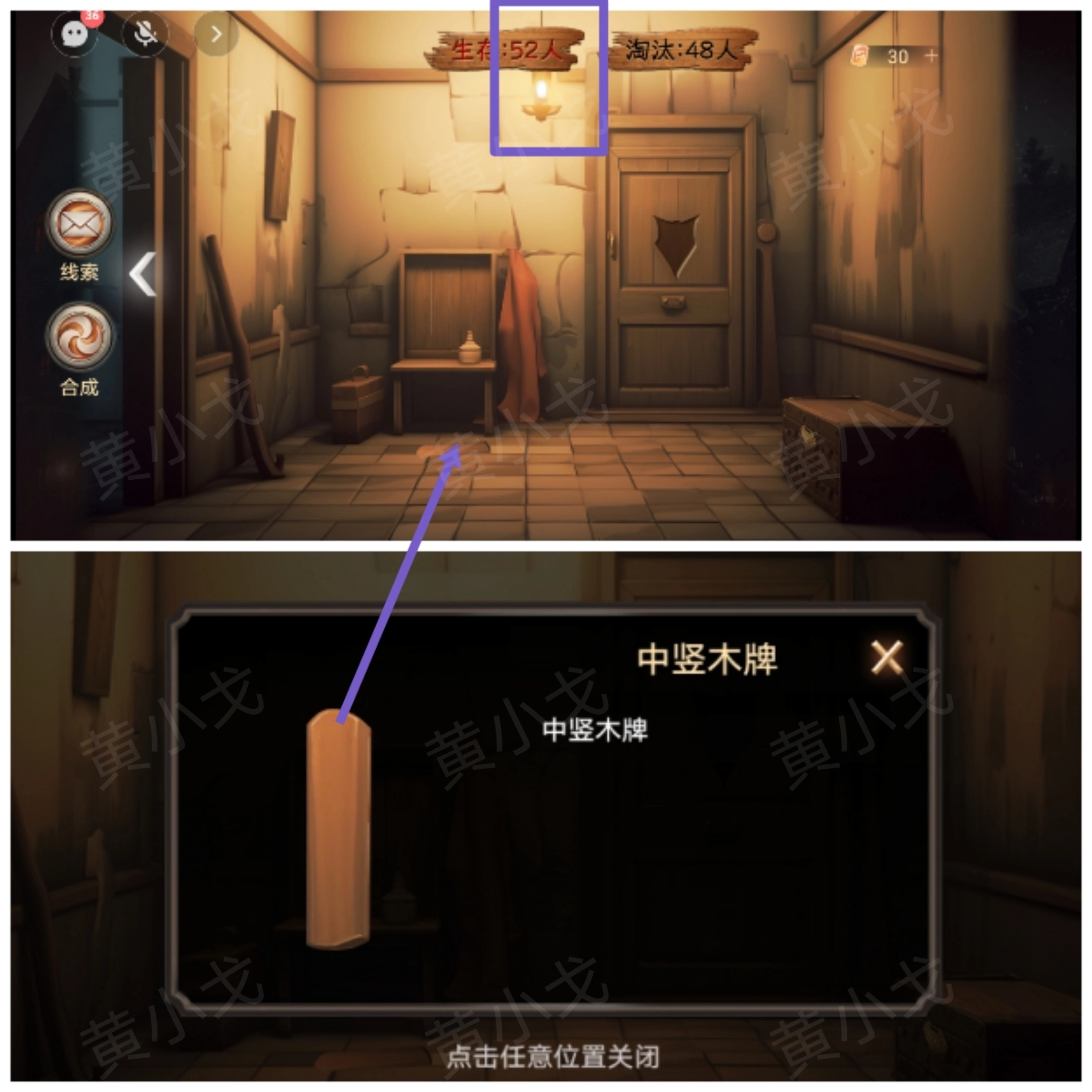 1.拾取地上的【中竖木牌】