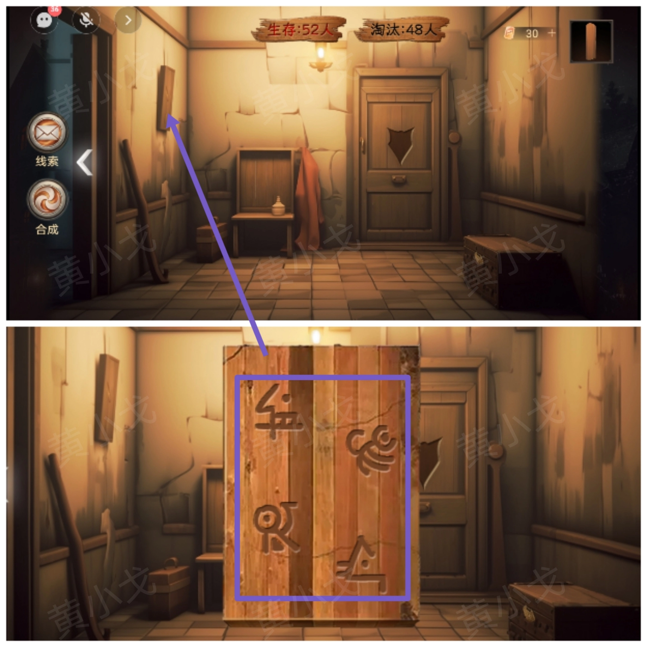 2.查看墙上的木牌,告诉男主上面的符号
