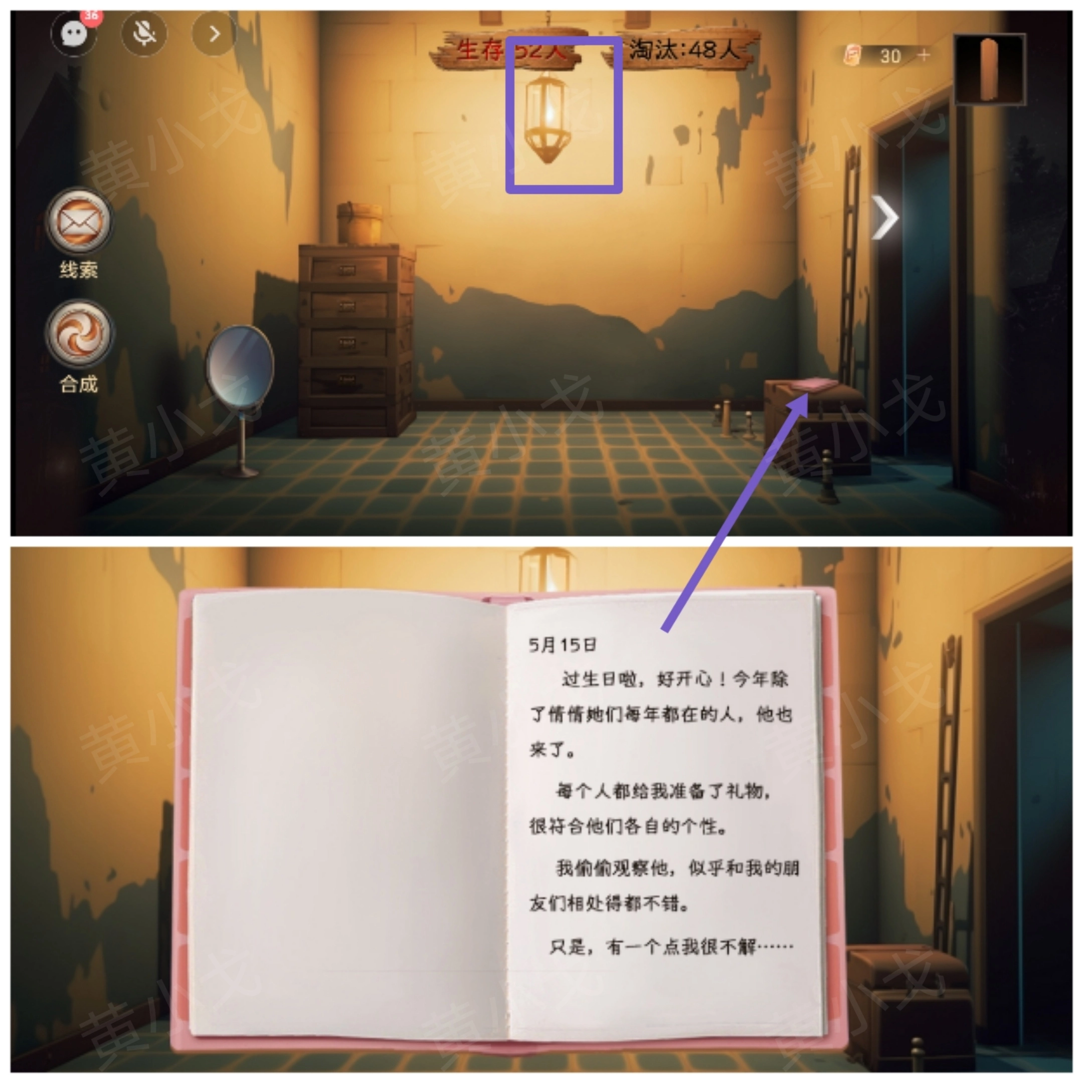 5. 开启暗格,查看纸条上所写内容,获取线索后告知男主。