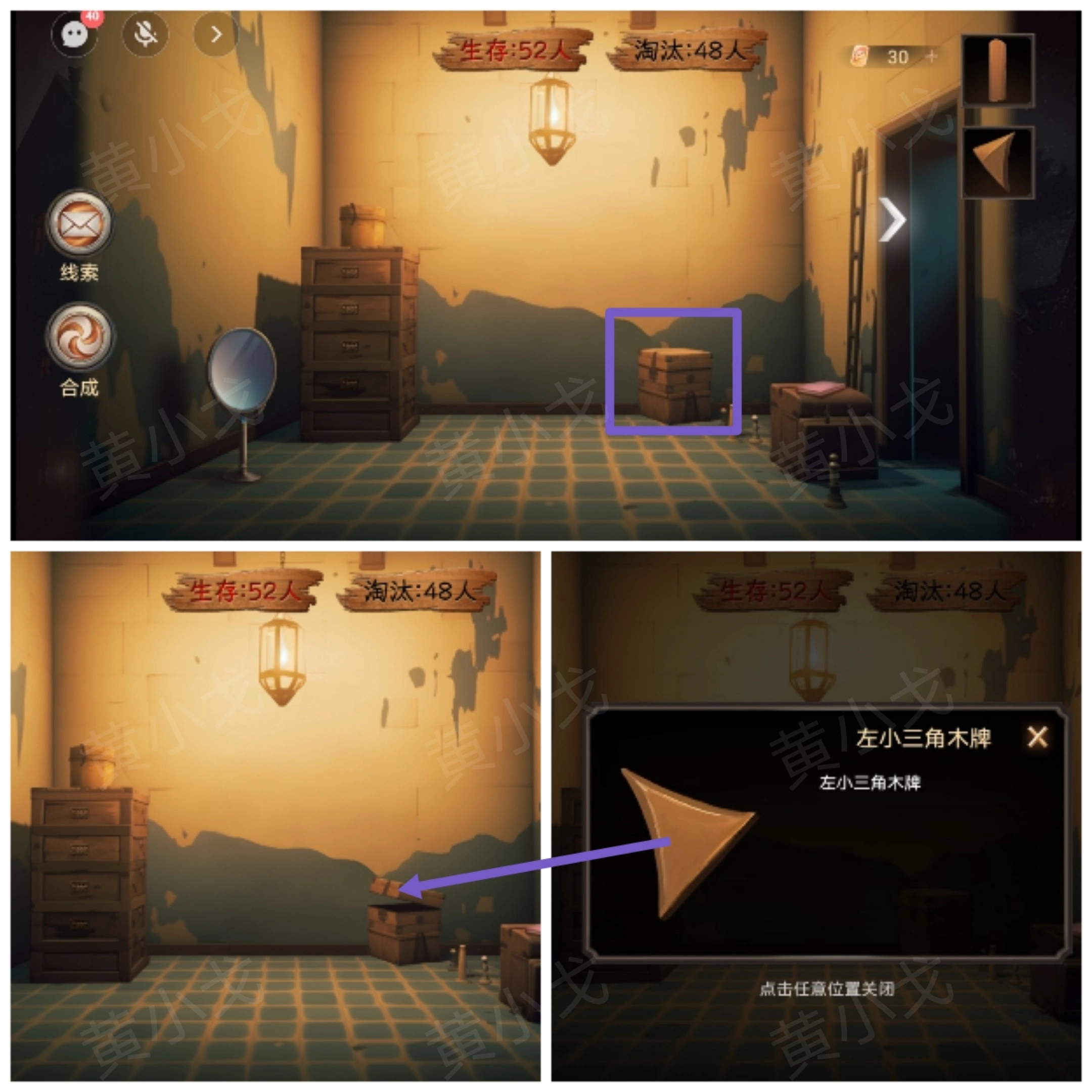 7.把地上的箱子打开,就能得到【左小三角木牌】。