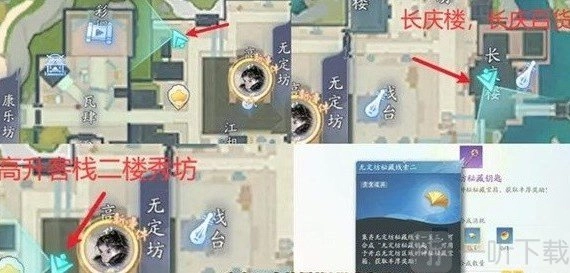 1玩家需前往三个位置,找到NPC并购买相应线索,之后便能获取无定坊的钥匙。