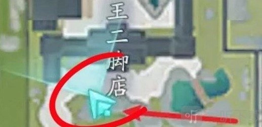 2、接下来,拿着钥匙前往王二脚店,在如下图所示的位置开启宝箱,就能获得。