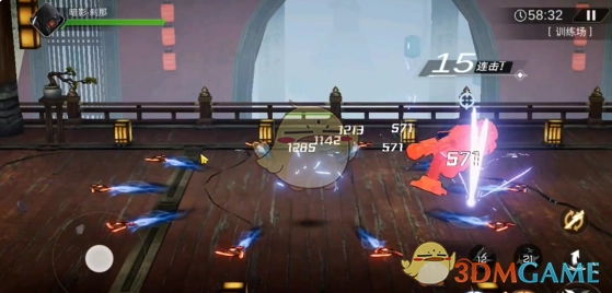 3、基础技能2:第一段技能朝着四周掷出回旋手里剑;第二段技能闪现到敌人的另一侧进行打击。要是手里剑没有收回,那就将其收回来。