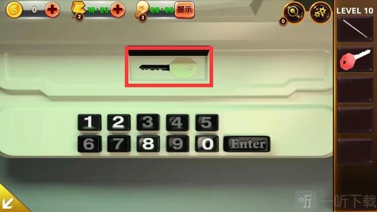 6、重新来到右侧的仪器台上,输入密码345679,获取钥匙。