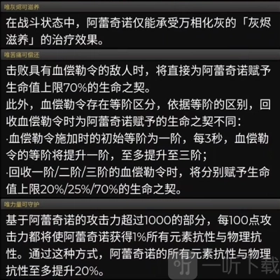 2、遗望之契:在处于【盈血】或者【狂妄之祸】状态时,提升火元素伤害。