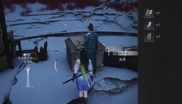 5、再次回到【天水集】,朝着北边前行,在那破碎的台阶处,能够看到第二个。