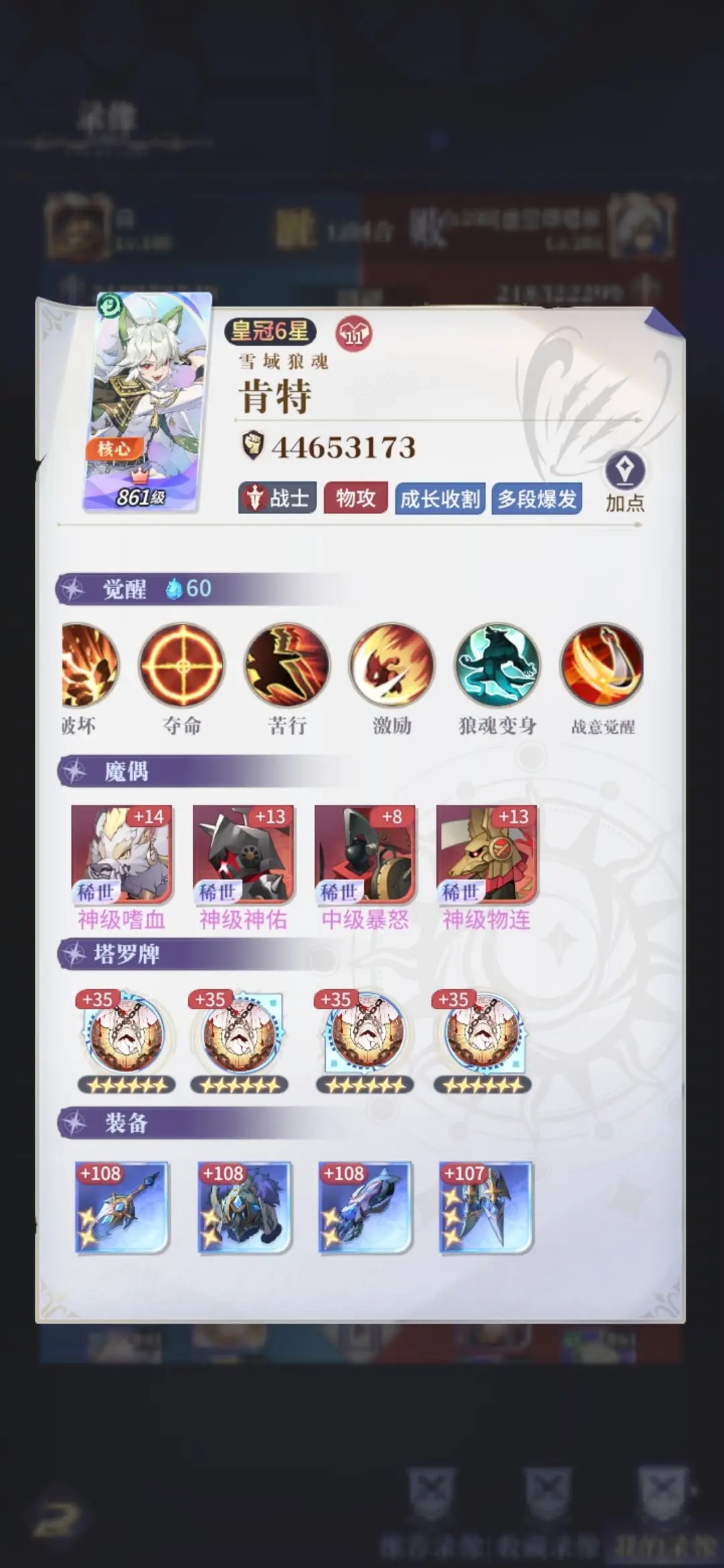 游戏里力量套和倒吊人套比较少见,这种稀缺性让它们具备了优势,具体情况可以查看相关图示。另外还附上了同氪度(稍微高一点且还在持续氪金)的冰盾露狼实战图,供大家参考。