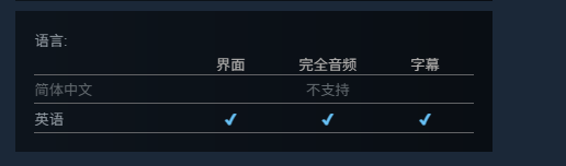 答:Steam平台上该游戏标注仅支持英文,未提供简体中文语言选项。
