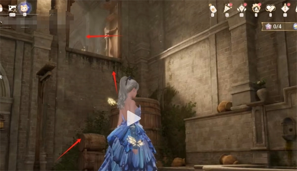 1. 进入副本后,向左转,走下楼梯,接着再次向左转,进入一个小房间。随后,往左上角方向看,能看到一条通道,(从角落里的桶上跳上去)