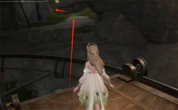 3、拿到灵感露珠后,跳上轨道的车上前进然后就会看到右手边有一个洞口跳上去