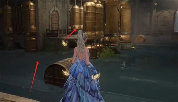 接着,我们朝着最上方的平台走去,到达后向左转,跳到水管上,这时能看到并获取2颗灵感露珠。之后,从水管上跳下来,落到平台上,再跳到对面,便进入下一个场景。