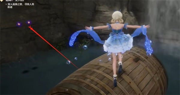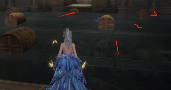 11、在此处顺着木桶跳跃,当跳到第三个木桶时,其左手边有2颗灵感露珠可获取(需注意:木桶能够滚动,所以要格外小心)