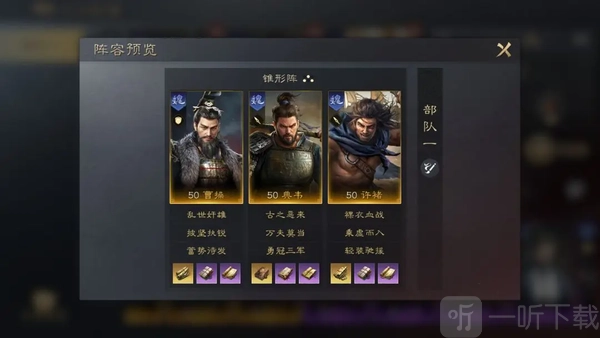 在《三国谋定天下》游戏里,不少玩家钟情曹操这一武将,却纠结于曹操阵容该如何搭配。实际上,由典韦、曹操、许褚组成的锥形阵,堪称主流阵容之一。接下来,就为大家详细介绍这套阵容的玩法。