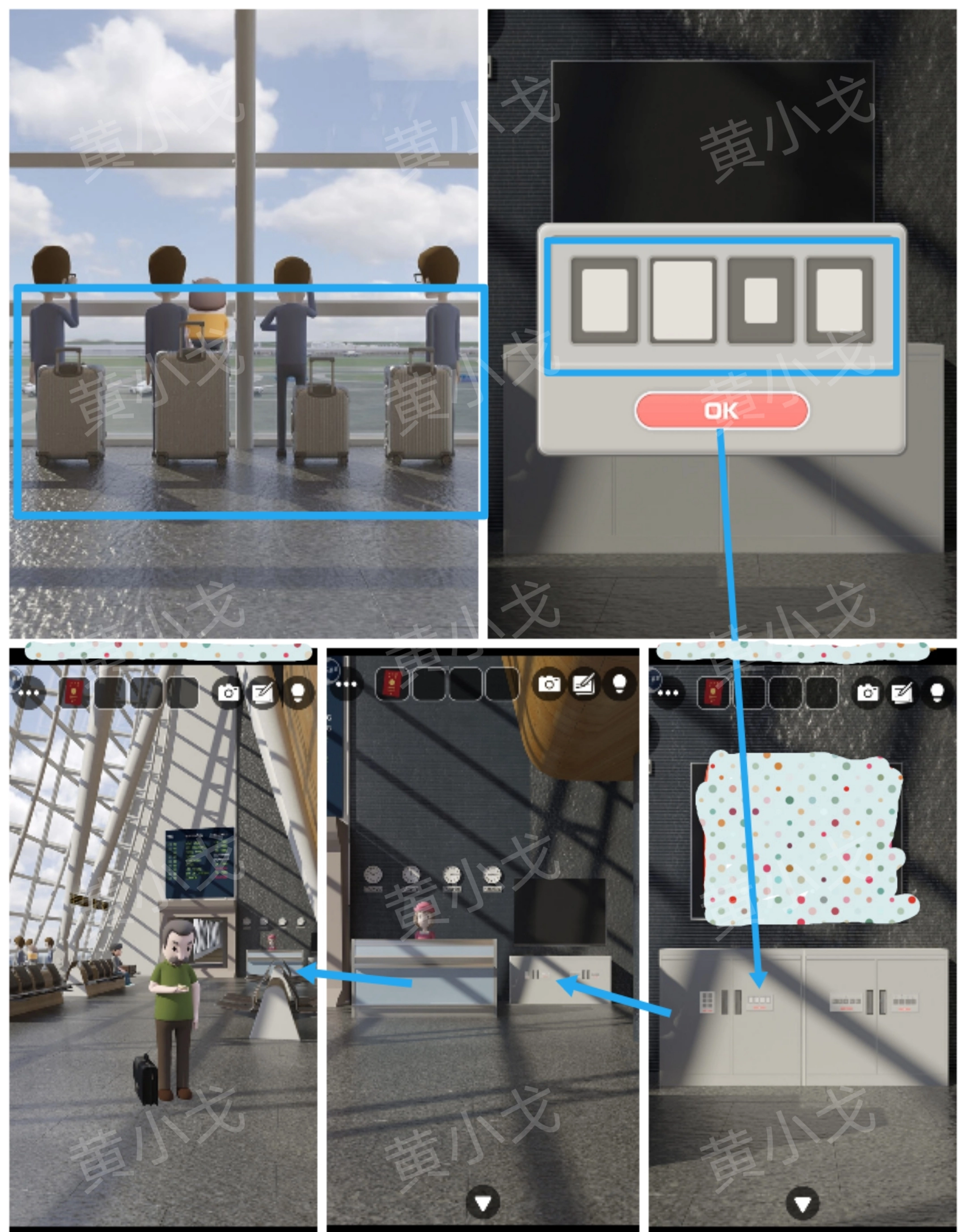 6. 找到柜子第二个柜门的密码锁并点击,依据四位游客旅行箱大小所提供的线索,对密码锁进行相应调整。