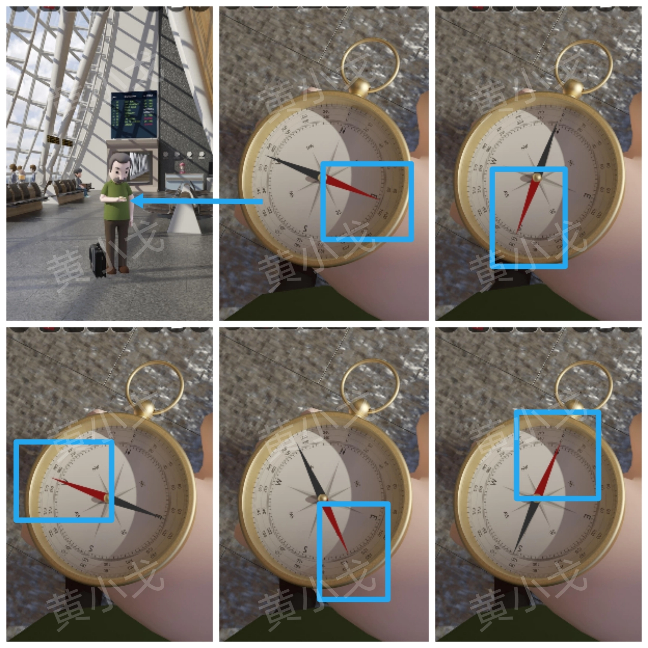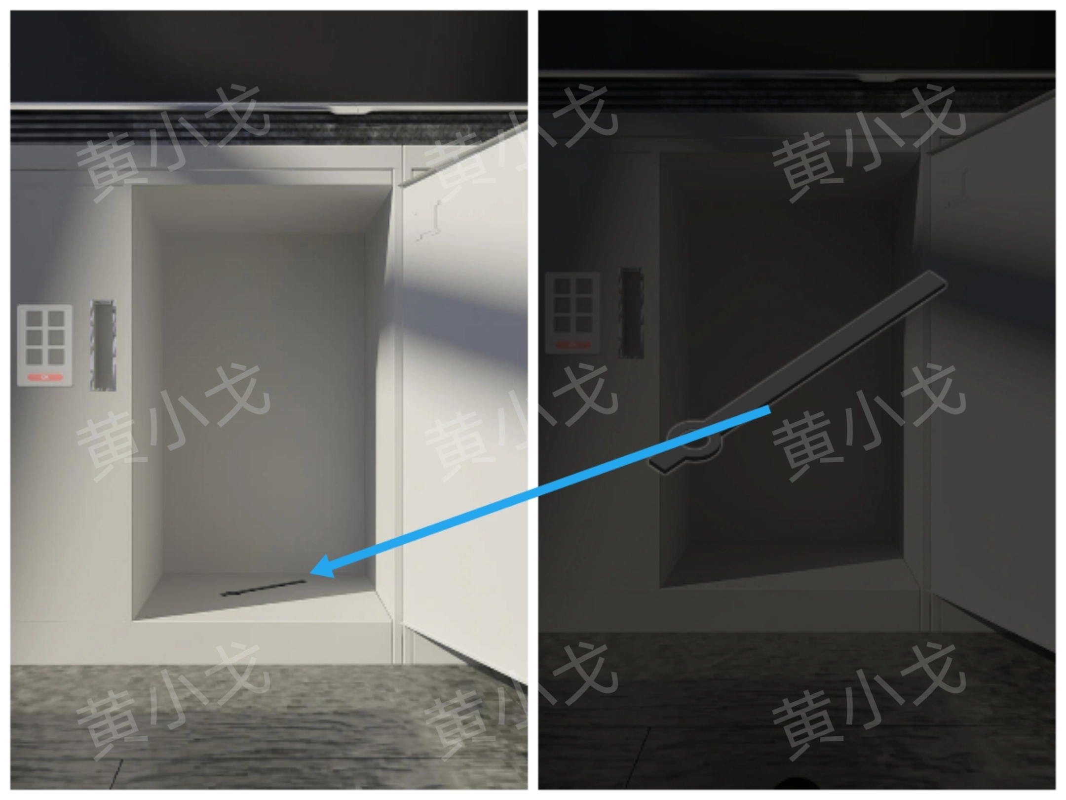 8. 轻点柜子第三个柜门上的密码锁,依据其上面的字母N提示以及箭头提示,再综合指南针指针的指向顺序与指示牌上的线索,来调整出正确的图标