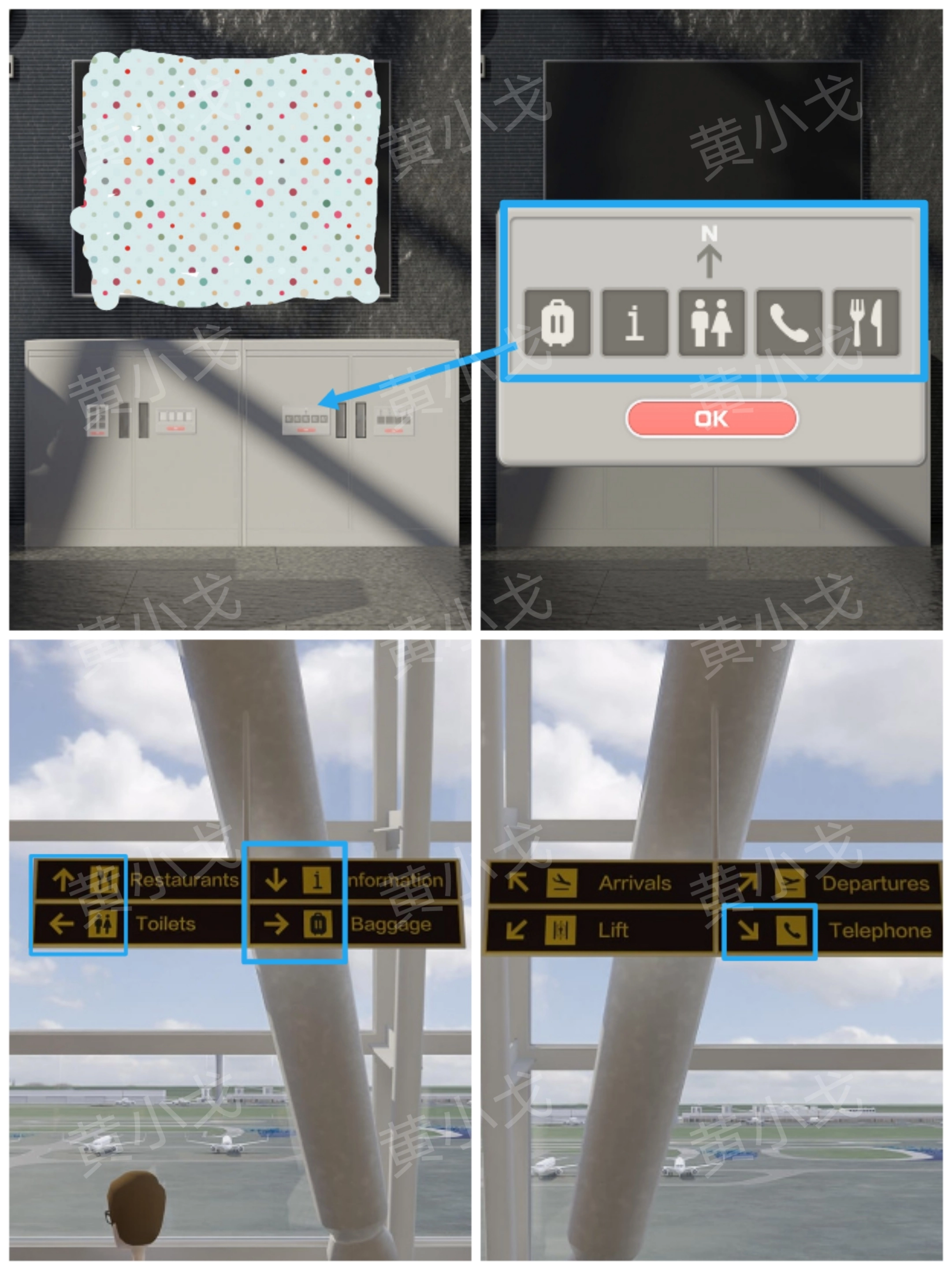 10. 轻点柜子第四个柜门的密码锁,依据其上面的图案提示,并结合显示屏呈现的线索,对密码锁进行调整。