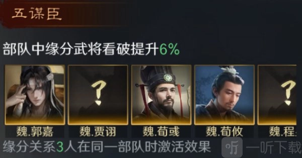 以上便是有关三国谋定天下中荀彧阵容搭配的完整攻略啦,期望能给大家带来帮助。更多精彩的游戏攻略,欢迎关注一听下载网。