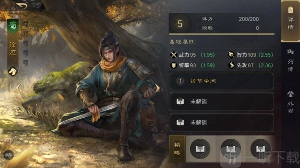 徐庶研读专属韬略《仗剑行》提高自身武力值,并提高兵刃伤害。