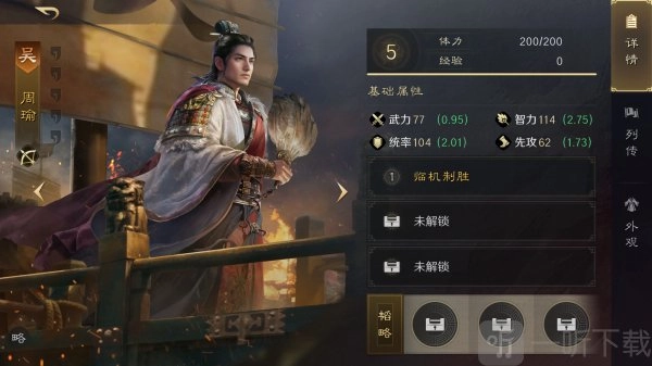 周瑜拥有高智力成长特性,这让他能对敌方持续稳定地进行谋略输出。同时,较高的统率成长值,也能够保障周瑜在前排的存活率。