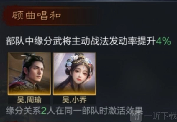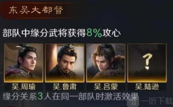 以上便是有关三国谋定天下周瑜阵容搭配的所有内容,期望能对大家有所帮助。更多精彩游戏攻略,欢迎关注一听下载网。