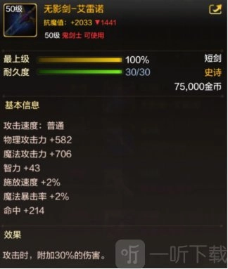 短剑的高面板加上攻击时附加30%伤害,成为鬼泣职业武器最优选择!