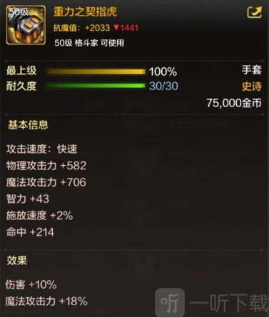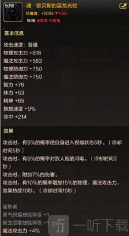 对伤害和魔法攻击力的提升非常高,双重加成是气功师职业目前最好的史诗武器。